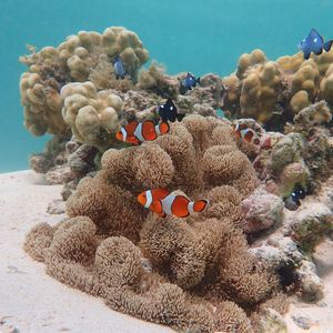 はじめての沖縄旅行という事で、色んな体験をしたいと思い、このシュノーケリング&supツアーを選びました。シュノーケリング自体もはじめてやるため、上手くできるか不安でしたが、ツアーのお姉さんが丁寧に説明してくださり、海での注意事項もわかりやすく伝えてくれました。とても明るい素敵なお姉さんと一緒に海に潜れてとても楽しかったです!そして私たちは携帯を持って入水しませんでしたが、お姉さんが水中カメラでたくさん写真を撮ってくれます。ウミガメやニモの写真もたくさん撮ってくださり、とても画質が良かったです。