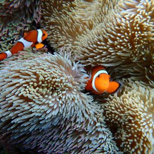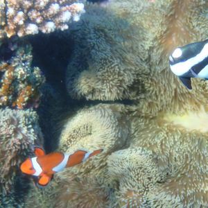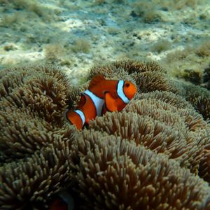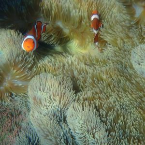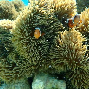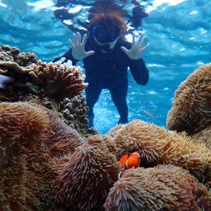 ガイドさんとキレイな海を探索しながら、カクレクマノミのスポットへ。ニモもカメラ目線でパチリ!可愛さ全開です♡
