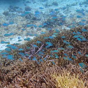 イントラさんが、先頭に立ってお魚さんがたくさんいる珊瑚礁に案内してくれます。
