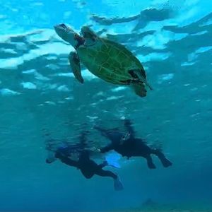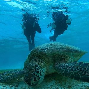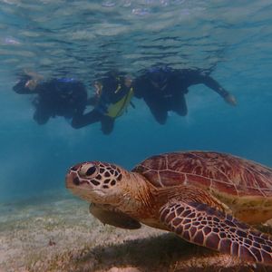 私はシュノーケリングじたいすごく久しぶりだったので少し不安でしたか、一緒に参加していた女性と話しながら、和気あいあいとした雰囲気でした。ウミガメに会えたときは本当に嬉しかったです。以前、宮古島ではない他のところでウミガメシュノーケルに参加したことがあるのですが、遠くに見えて、あっという間に過ぎ去ってしまった記憶があるのですが、こちらのシュノーケルは、ウミガメが、一緒に泳ごうよ!と言っているかのようでした。ウミガメシュノーケルならこちらのツアーは本当にオススメです!