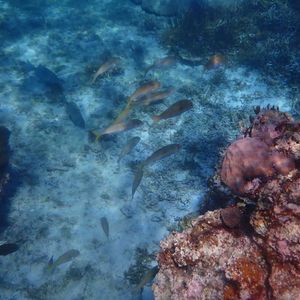 午後からシュノーケリング、最初は口呼吸に戸惑ったけど、すぐに慣れました。こちらもきらきら輝く珊瑚礁、いろんな色の魚たち、そしてウミガメにも会えました。