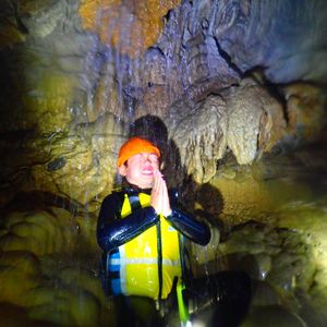 パンプキン鍾乳洞は見るだけかと思いきや、まさかのその鍾乳洞を登り、奥まで解説してもらいながら進むことができました!とても神秘的だったし、冒険してる感じが楽しかったです!!