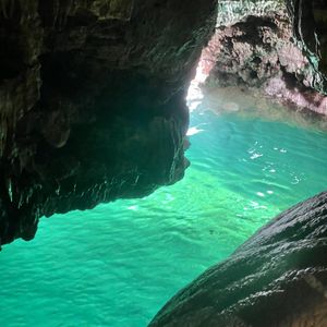 1番最初にパンプキン鍾乳洞までカヌーで行きました。海の景色を見ながらカヌーを漕ぐのが最高でした。鍾乳洞の中も写真で見るより凄く素敵でした。パンプキン鍾乳洞の中は登らないと見ることができない為、少し怖ったが、ガイドさんが優しく上まで連れっててくれました。シュノーケリングでは、ウミガメと会えるのは珍しいということでしたが、奇跡的に2回もウミガメを見ることが出来ました。ガイドさん面白くて最初から最後まで丁寧に色々説明してくれました。最高のツアーでした。
