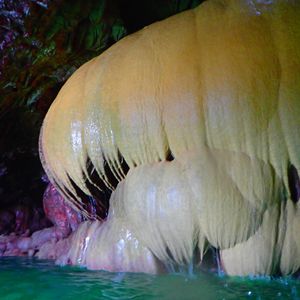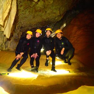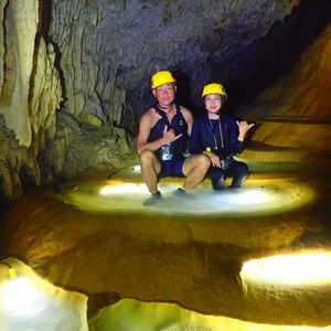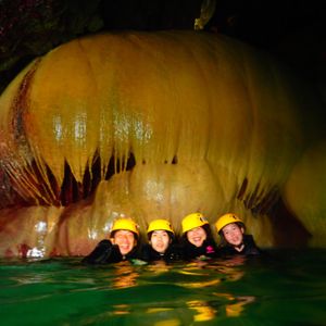 こんなパンプキンの鍾乳洞は珍しいし、よじ登ったり、飛び降りたり、洞窟の中を泳いだり、洞窟の自然のミネラルの泥を顔に塗ったりとアクティビティ満載です。