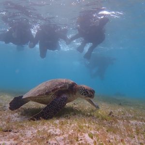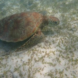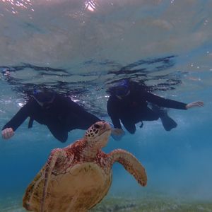 前日にウミガメに会える時間を案内してくれ、当日もウミガメと一緒にシュノーケルすることが出来ました。シュノーケルの時間もたっぷり取られていますし、綺麗な魚や珊瑚がいるところまで案内してくれます。私は泳ぎが苦手ですが、ガイドさんが浮き輪引いて連れてってくれたのとても安心でした^ ^