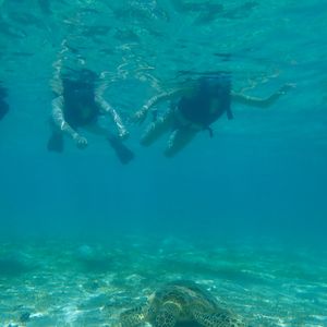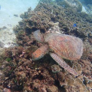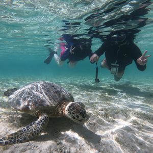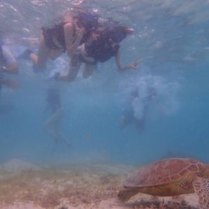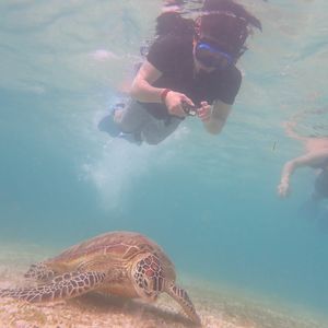 その後のシュノーケリングも、天気がよくなかったにも関わらずウミガメがたくさんいて、ちょっと泳げば発見!という感じで6〜7匹見れました。もう30cmの距離で一緒に泳いだり、海藻を食べてるところをゆっくり泳ぎながら見れたり最高でした。特に、ウミガメが息継ぎする瞬間を間近で見れたのはとても可愛かった。その他にも、珊瑚礁の真上を泳いで色々な色の魚を見れたりと雨降っていても全く関係無かったです。インストラクターの方もとても気さくで色々と教えてくれてとても楽しい数時間でした。