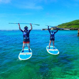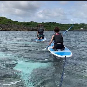 サップは浅瀬の水の色が綺麗な場所で行い、海に出ることもできました!オールを上手く使うのが難しい場合はインストラクターの方が牽引してくださったり、友人との参加で2人乗りも体験させてくれたりと初サップでしたが大満足でした。