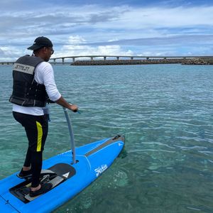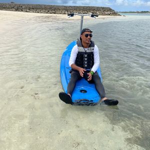 昼一からの集合で、最初にSUPでした。風が強い日だったので、危険も考慮し陸に近いところでのSUPでしたが、ボードの上に立って漕ぐだけでなく、寝転んでゆったりと空を見ながらぼーっとする時間もありとてもリラックスできた。インストラクターの方に写真も撮ってもらったり、宮古島の話も聞けたりで、本当にリラックできた数時間で最高です。