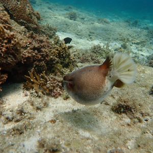 ガイドさんがさっと潜ってフグを取ってきてくれました。実際にフグを持たせてもらったのも感激しました。