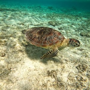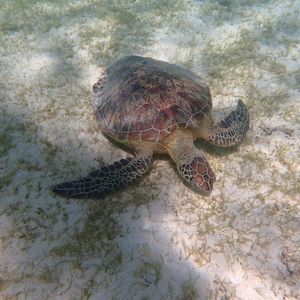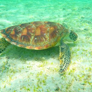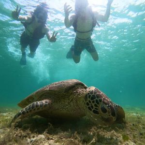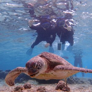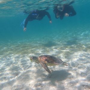 お天気に恵まれたこともあり海亀さん6-7匹会えて、沢山一緒に泳げました!他にも珊瑚や熱帯魚が綺麗で感動です。