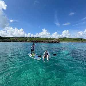 初めてクリアsupを体験しました。大学生の娘と2人で参加させていただきました。ドキドキしながらでしたが、スタッフの方が丁寧に教えてくれ緊張がほぐれ、大変楽しい時間となりました。初めはなかなか上手く行きたい方向に進めなかったり、思うようにいかず、大丈夫だろうかと思う場面もありましたが、とにかくスタッフの方がいろいろ声かけいただいたり、違う話をしていただいたりで気持ちを前向きにしてくれました。気持ちのよいコミュニケーションに感謝しています。最高の景色で気分を高めることができいい経験となりました。また宮古島に来た際にはお世話になりたいです。
