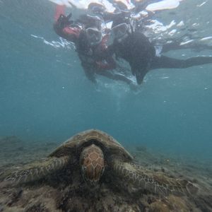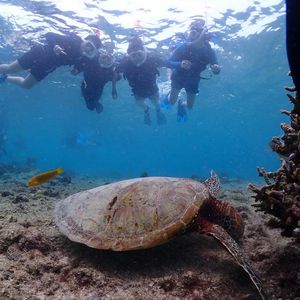 本日は台風の影響でウミガメシュノーケリング🤿のみに変更になりました。彼女も泳ぎがあまり得意ではない為、行うまではとても心配でしたが、ガイドのりきさんが優しく引っ張ってくれてとても安心できました。海中での動き方などを事前に丁寧に説明してくれるだけでなく、実際に見た生き物について詳しく教えてくれるところがとても良かったです。写真や動画を上手に撮って下さるので、付き合っている方や家族の人におすすめです。