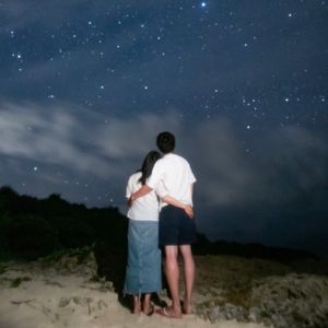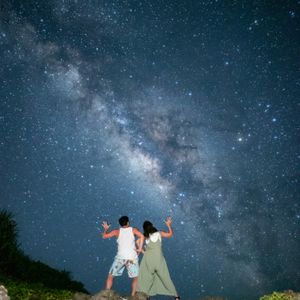 5泊6日の新婚旅行で宮古島を訪れ、二日目の夜に予約をしていましたが、天候が悪くその日は数時間前に電話で中止のご連絡をいただきました。星空ツアーは楽しみにしていたので最後の夜に予約を動かしていただき、最終日に無事にツアー参加できました。与那覇前浜集合し、ゴルフ場で撮影しました。ホテルからは見えなかった星空がたくさん見れて素敵でした。写真撮影は数十秒間じっとしている必要があるので、ひらひらしたスカートは写真が少しぼやけてしまうかもしれないです。
