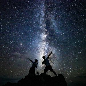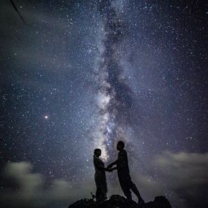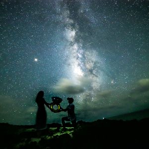 現地について涙が出そうなほど、言葉では表せないほどの星空と、優しいスタッフの方が迎えてくれて安心しました。念願の天の川とのショットが一生の記念になりました。撮りたいイメージを伝えるとカメラマンの方がイメージ通り撮ってくれました。この写真は、2人はシルエットで天の川をドーンと写してほしいと言ったものです。その日、そこでしか絶対撮影出来ない最高の写真になりました。素敵なスタッフの方たちにも、本当に感謝です。