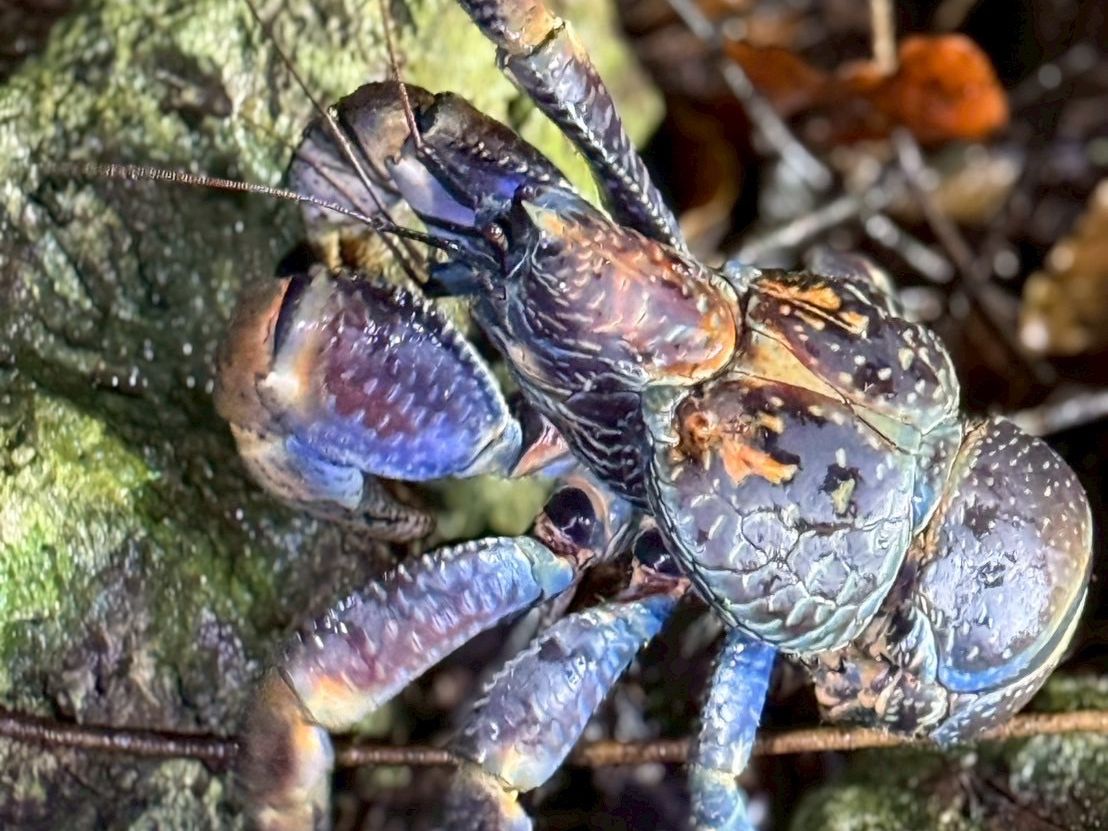 残念ながらヤシガニ発見には至りませんでしたが、別グループ(?)が見付けたヤシガニを見ることはできました。