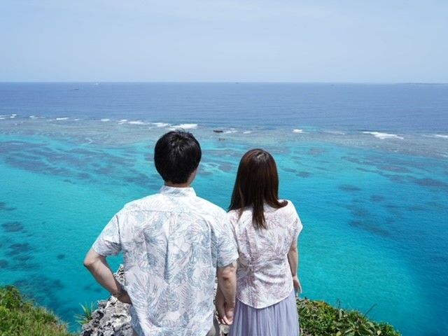 私たちは結婚式にも使えるカジュアルな前撮りのイメージでお願いしましたが、ポーズや花束の持ち方、表情などたくさんアイデアを伝えて貰いながら、伊良部島の綺麗な大自然の中で素敵な写真を撮っていただきました。撮影スポットと言いながらも、観光スポットとして人気のビーチなどを巡れたので、観光としても大満足でした。写真も2.3日後に送っていただけて、すぐ確認できるのもよかったです。観光の思い出を楽しく残したい方、ウェディングに写真を使いたい方にもとってもおすすめです。
