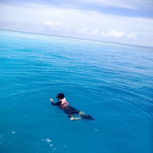 水中カメラを持って撮ってたら、お姉さんが潜って水面にいる私たちを撮影してくれました。素潜りで、何メートルももぐってくれました。すごい。そしてめちゃくちゃいい写真が撮れてました。本当にありがとうございました。