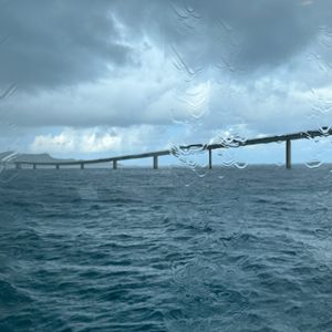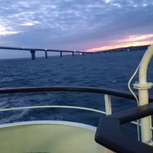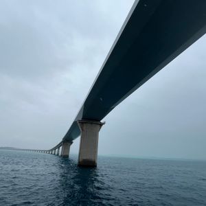 蒼い海への航海スタート❣夕日と海と橋下❣