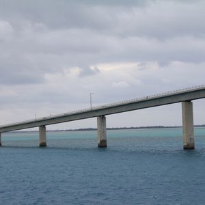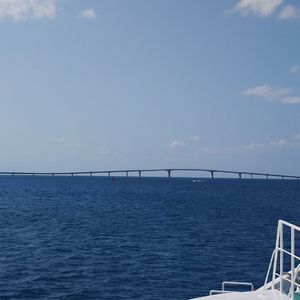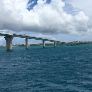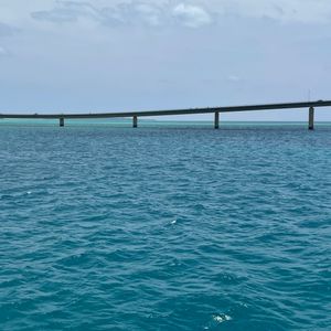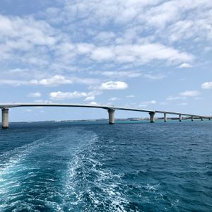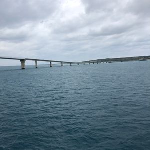 急に天候が悪くなり波が高くなったところコース変更で伊良部大橋の下を潜ってくれ、橋が一望出来出来た。