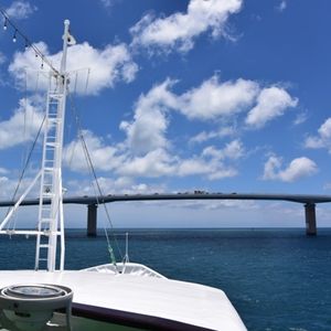 その後、ゆっくりと伊良部大橋に向かい、大橋をくぐるなど景観を存分に楽しめました。(池間大橋、伊良部大橋、来島大橋の3つを船上から見られます)