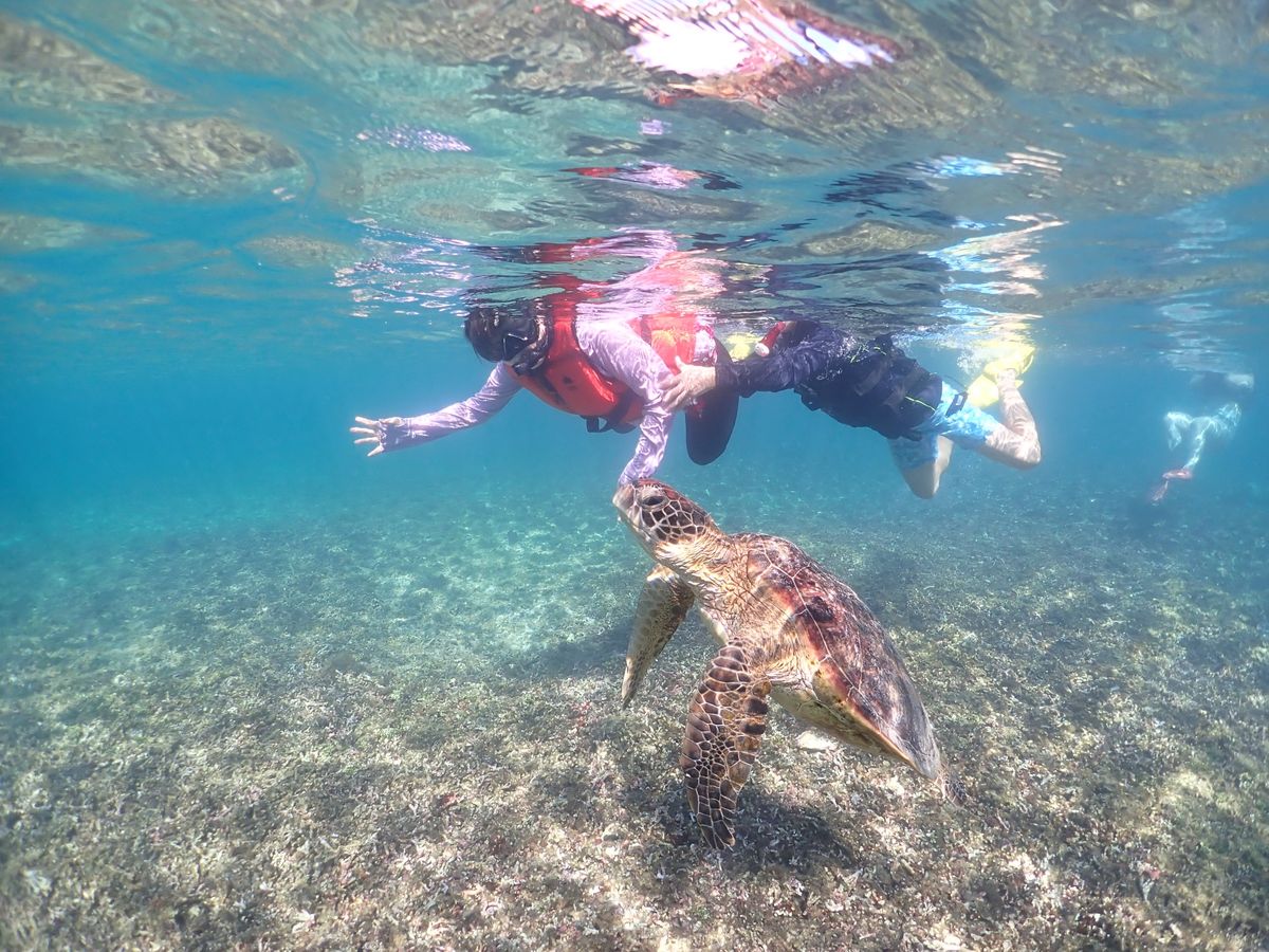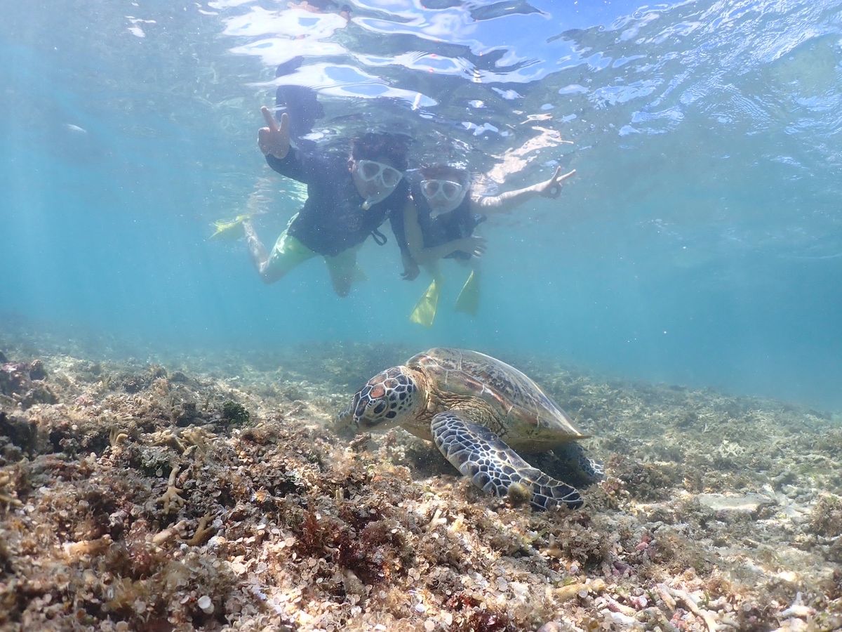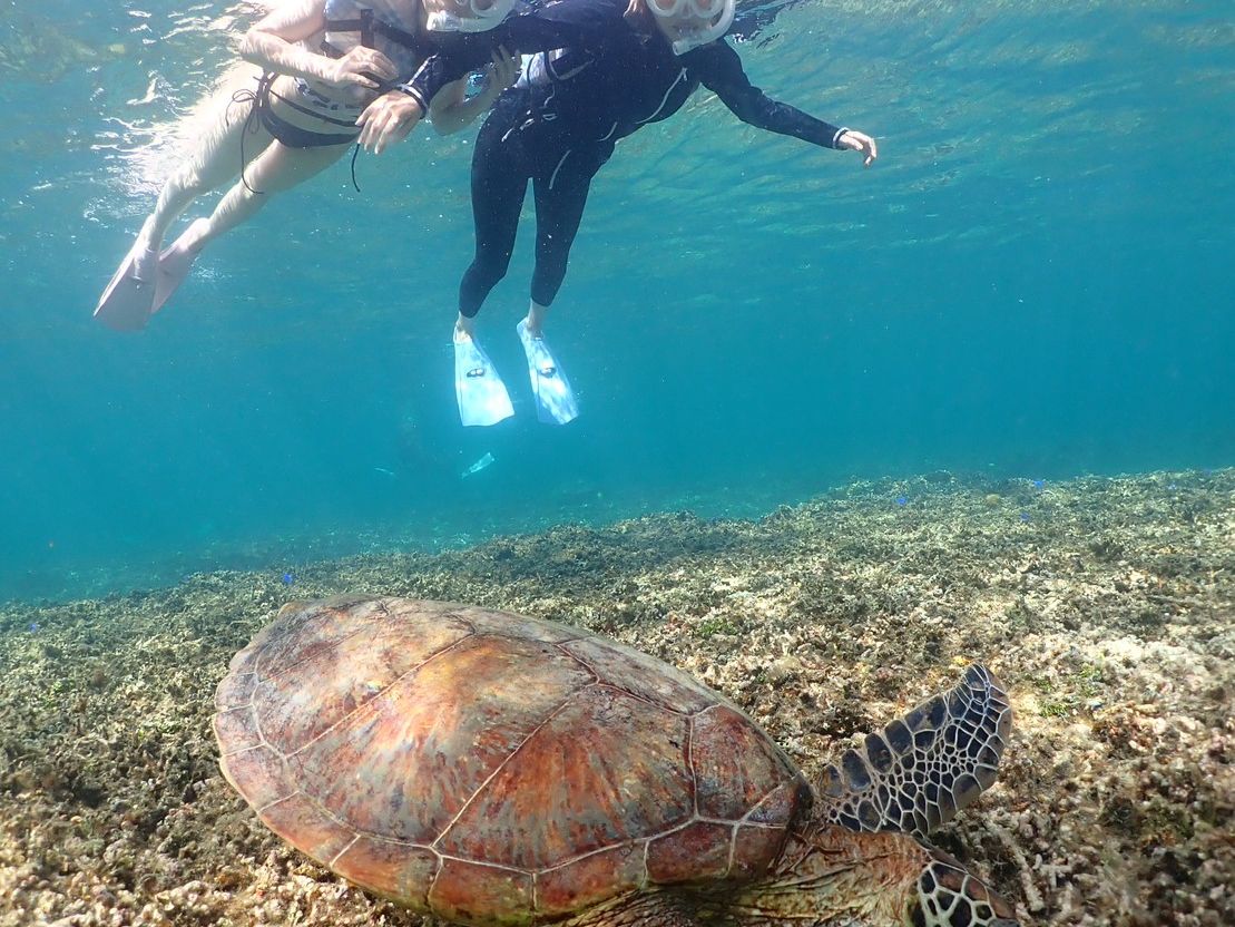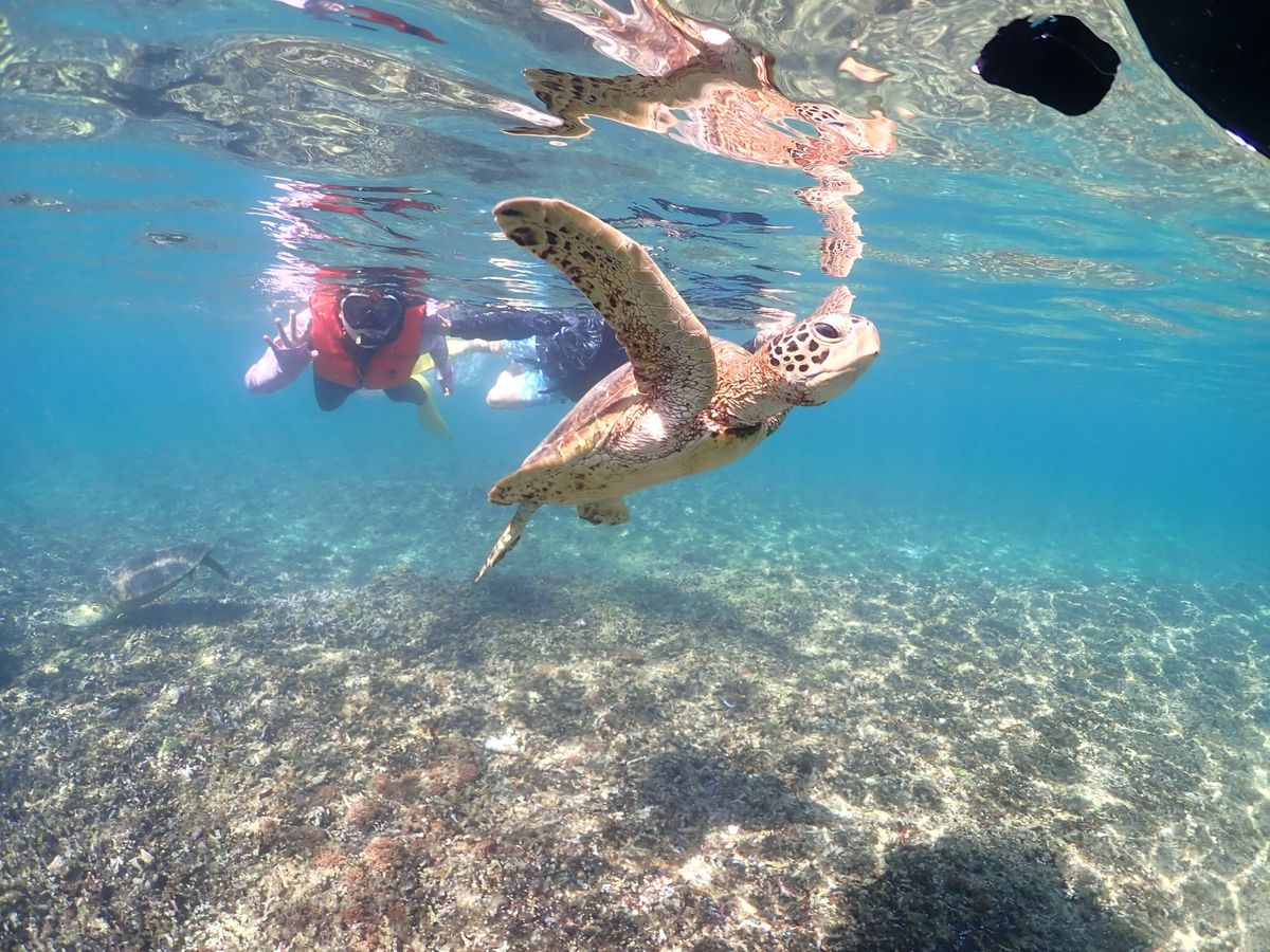 4匹のウミガメに出会え、透明度の高いキレイな海での絶景を楽しみました。インストラクターのお兄さんのサポートも手厚く、初めての方・泳ぎがあまり得意ではない方でも安心して、楽しむことができると思います。ウミガメやサンゴに関する豆知識も教えてくれて、とても素晴らしい体験でした。おすすめです!