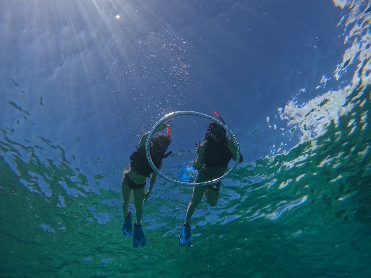 初めてのシュノーケリングでしたが、丁寧に教えて頂いてとても楽しかったです。ライフジャケットを着用しているので足が着かない場所でも心配なく泳げました。泳ぎが苦手な場合でも浮き輪につかまれば引っ張ってくれるので安心です。