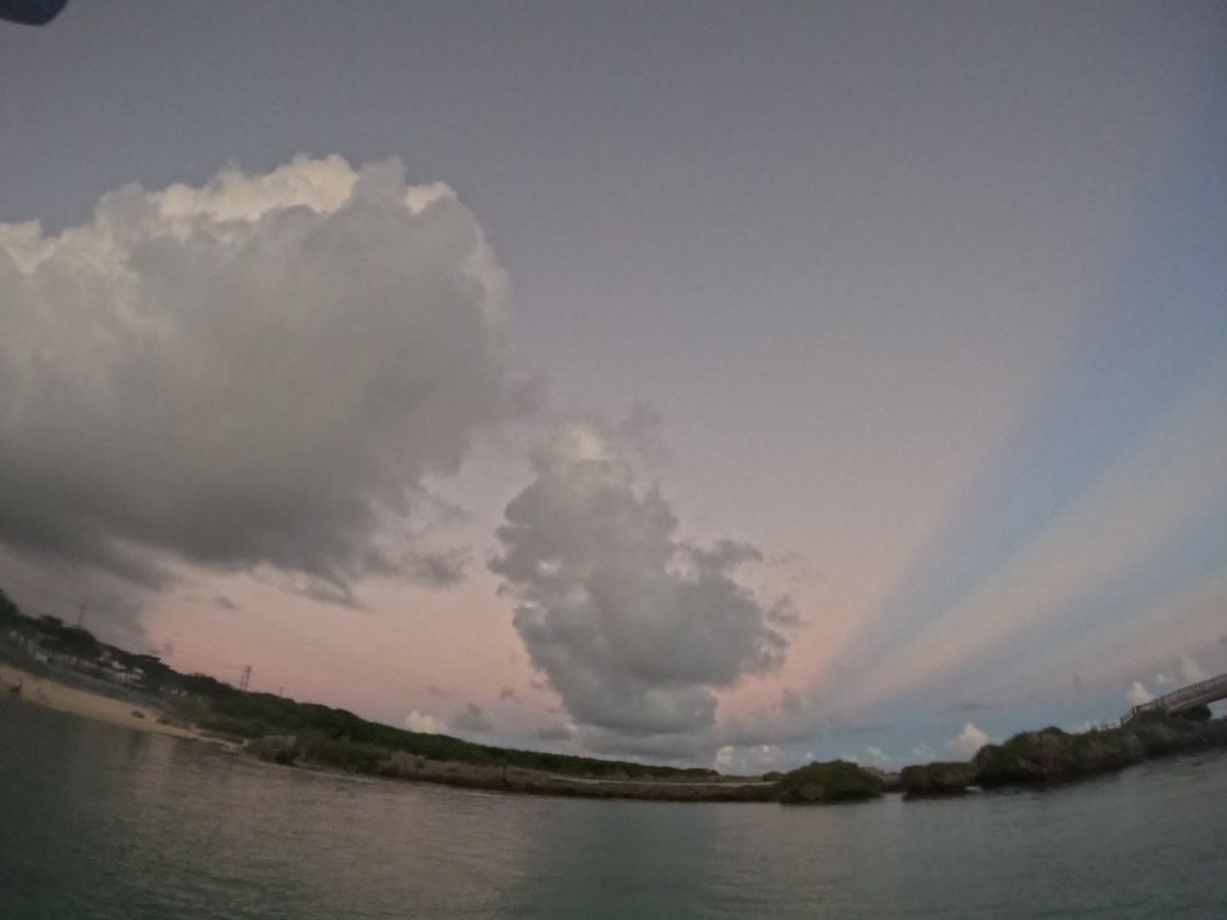 いつも使用しているビーチが海況不良のため、湾のように囲まれているビーチでの開催になりました。波が穏やかだったので初心者でも安心して体験できました。インストラクターの方も優しく教えてくれて、運動が苦手な私でも楽しめました。いつものビーチでは夕陽が海に沈む形ですが、今回のビーチでは島に沈む形でした。夕陽で雲が照らされてとても綺麗な景色でした。写真もたくさん撮って頂きました。初めてのSUP体験で素敵な景色も見られ、良い思い出になりました。