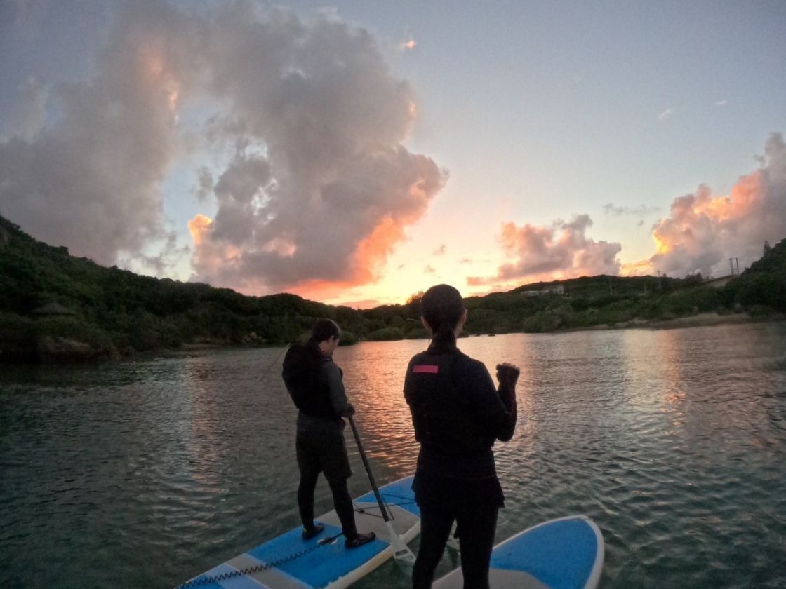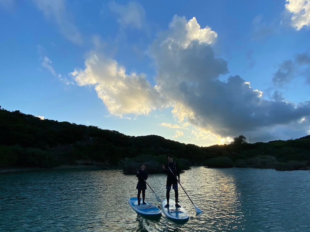 海況不良により本来とは違う場所での開催でしたが事前に説明いただき、サンセットを見ることができました!最初にSUPの乗り方を教えていただけたのですぐにコツをつかめ楽しむことができました!天気が不安定で曇っていましたが夕日が出る瞬間をねらってサンセットとの写真もたくさん撮っていただき優雅な時間になりました!!また宮古島に行った際は雲が少ない日にリベンジしたいと思います!!