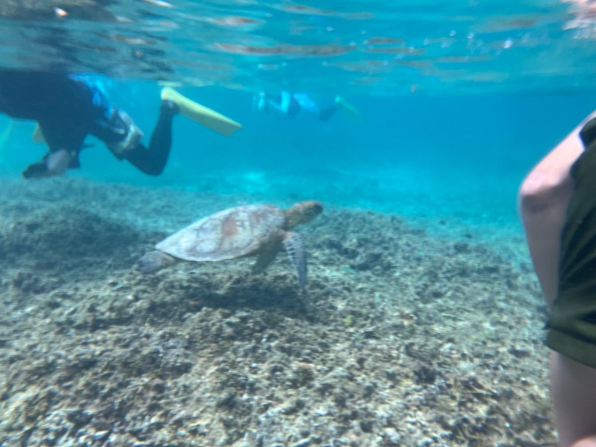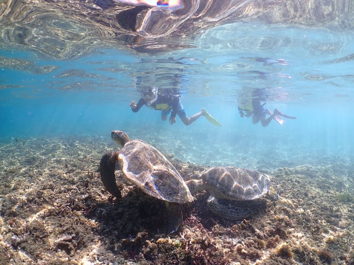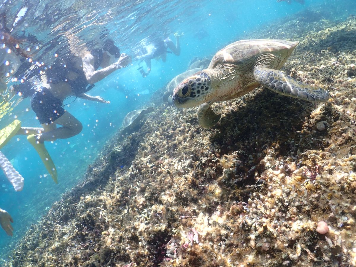 ウミガメ遭遇率99%と聞いていましたが、120%くらいのウミガメを見ることができました!全く逃げることなく、近くで写真を撮る時間も多く大満足です!ガイドの男性おふたりも、非常に愛想良く、海や地形のことを詳しく紹介してくださりました!ツアー終了後もLINEで観光地や美味しい飲食店を教えてくださり、写真もすぐiPhoneで受け取り可能でした!非常にお勧めできるツアーです!