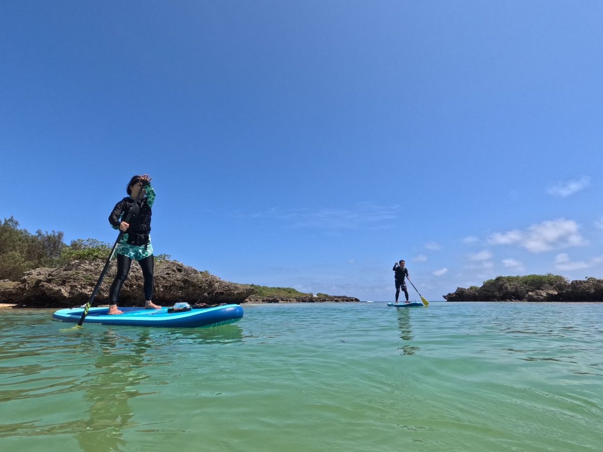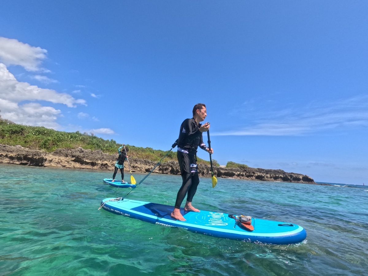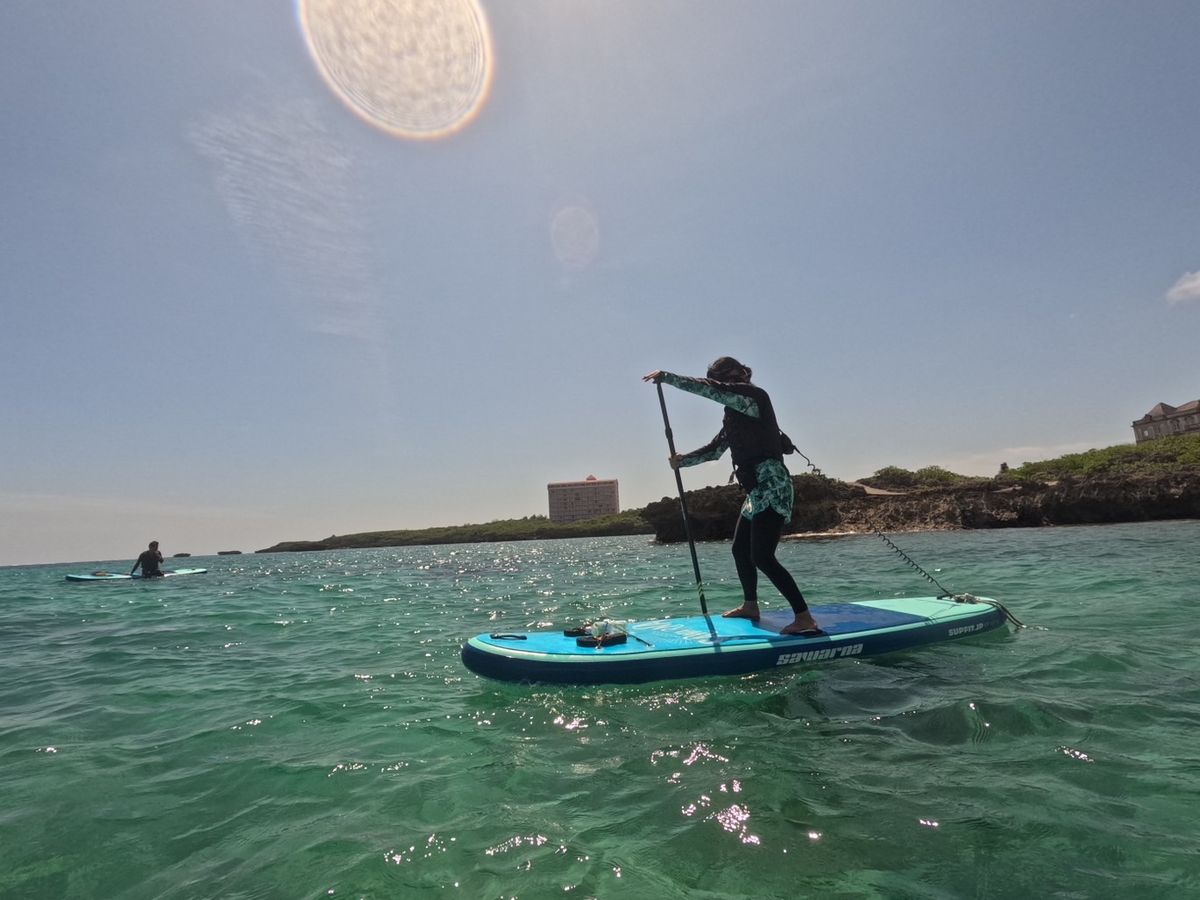 理由はガイドさんの教え方と、浅瀬で十分に漕ぎかたの指導や練習をしてから深場に行ったので、落ち着いて乗ることができたためだと思います。
