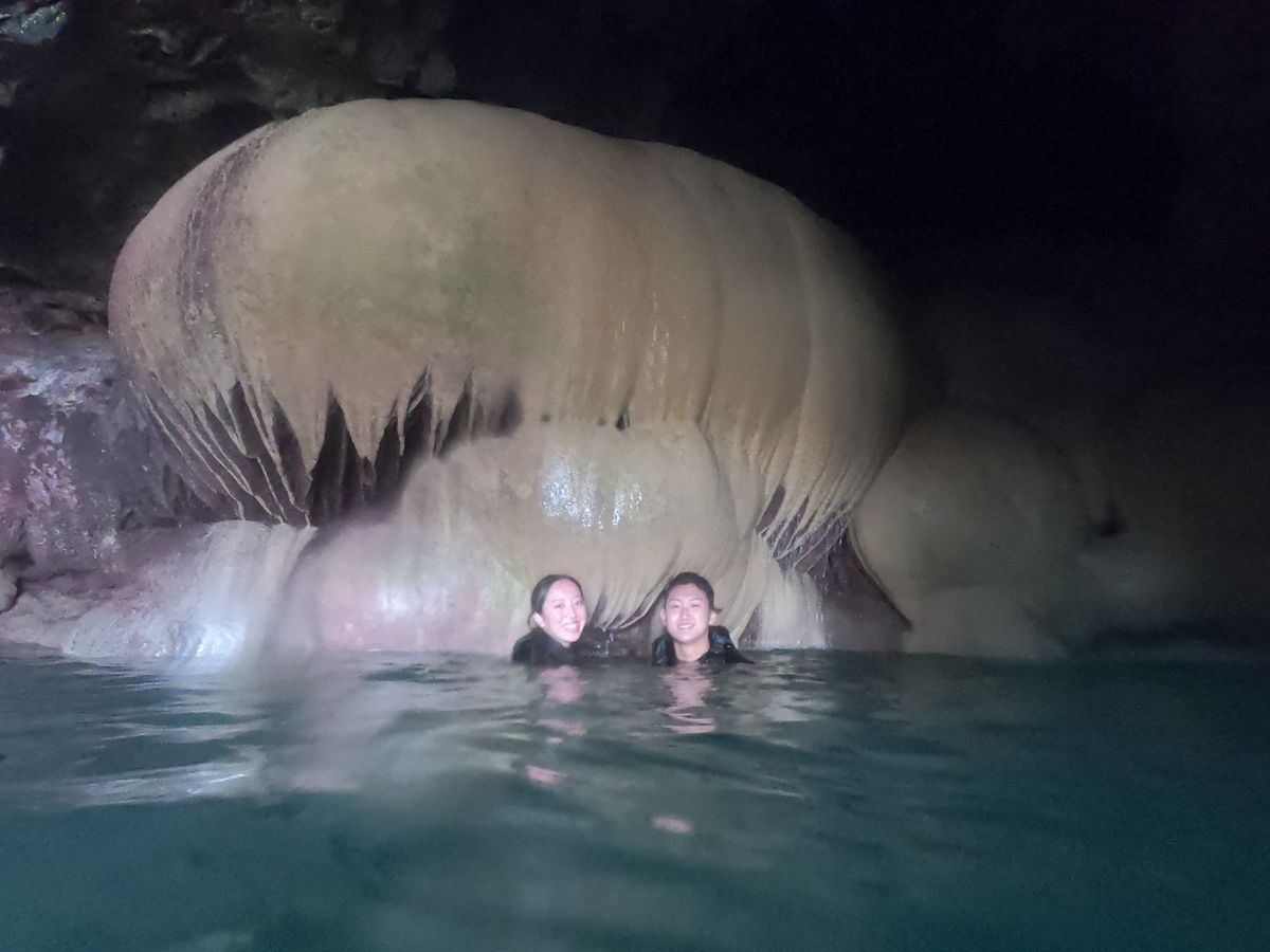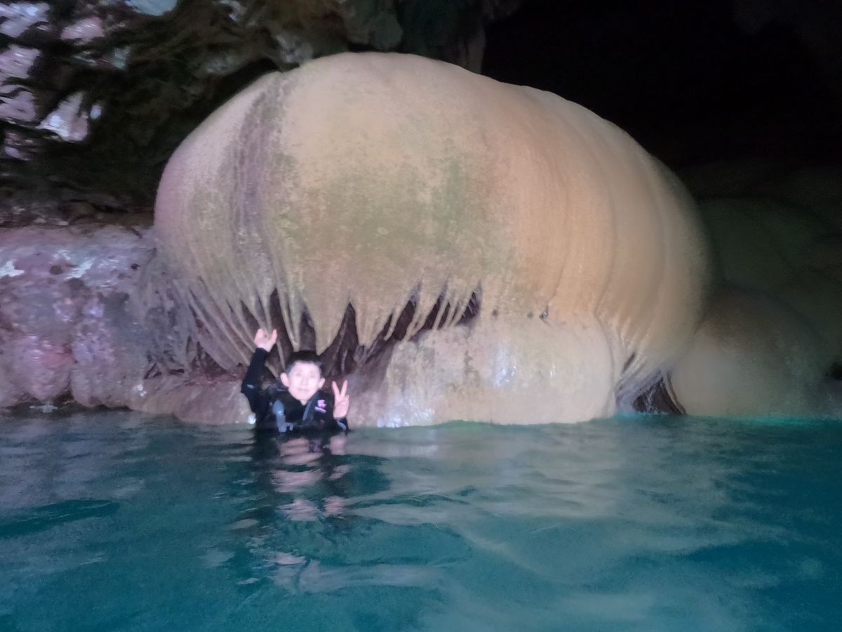 鍾乳洞の上からのダイブや、カヤックに乗る体験は生まれて初めてだったので凄く楽しかったです。