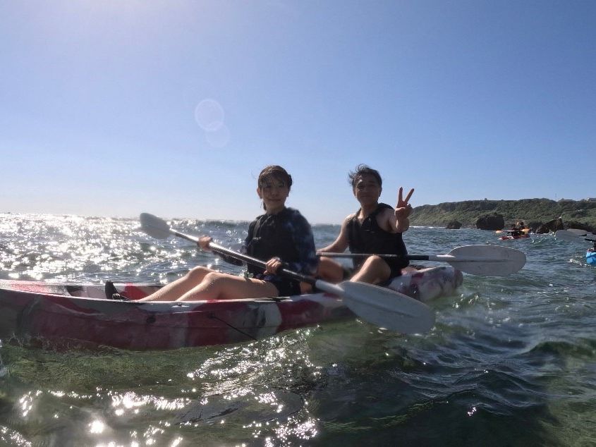 カヤックでパンプキン鍾乳洞まで移動し、鍾乳洞には泳いで入りました。パンプキン鍾乳洞の中は大変神秘的でした。ガイドの方は大変丁寧に鍾乳洞の中を案内、説明してくれました。パンプキンの前やパワースポットの箇所で記念写真を撮っていただき、ツアーの翌日にはデータで写真を確認できました。参加できて本当によかったです。宮古島に旅行に行く際には、ぜひおすすめしたいツアーです。ただし、冬の宮古島は風が強くツアーが開催されない場合もあるため天候の良い日をいくつか希望されると良いかと思います。