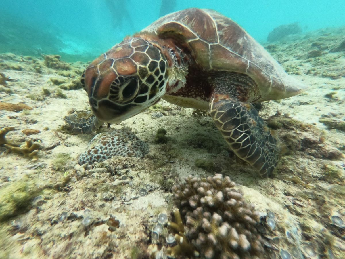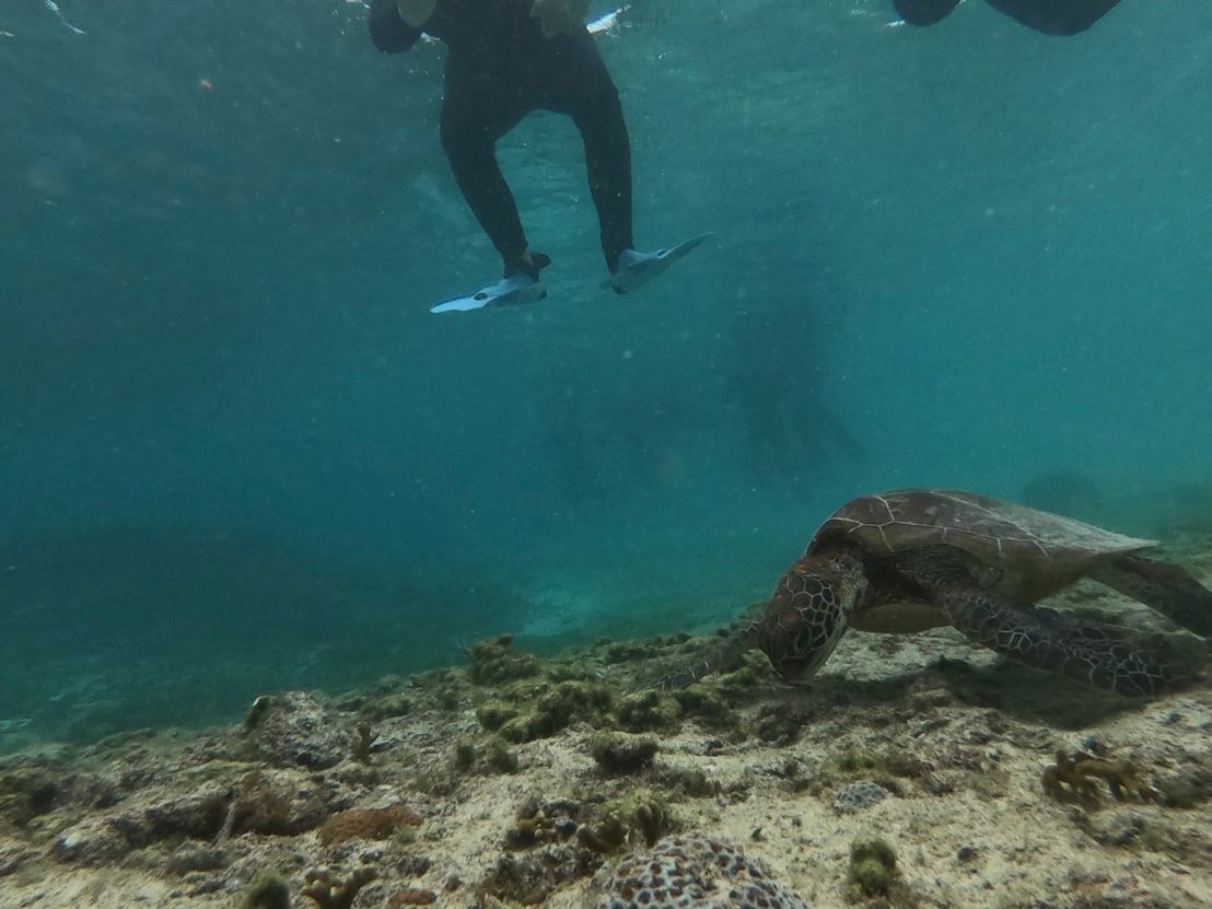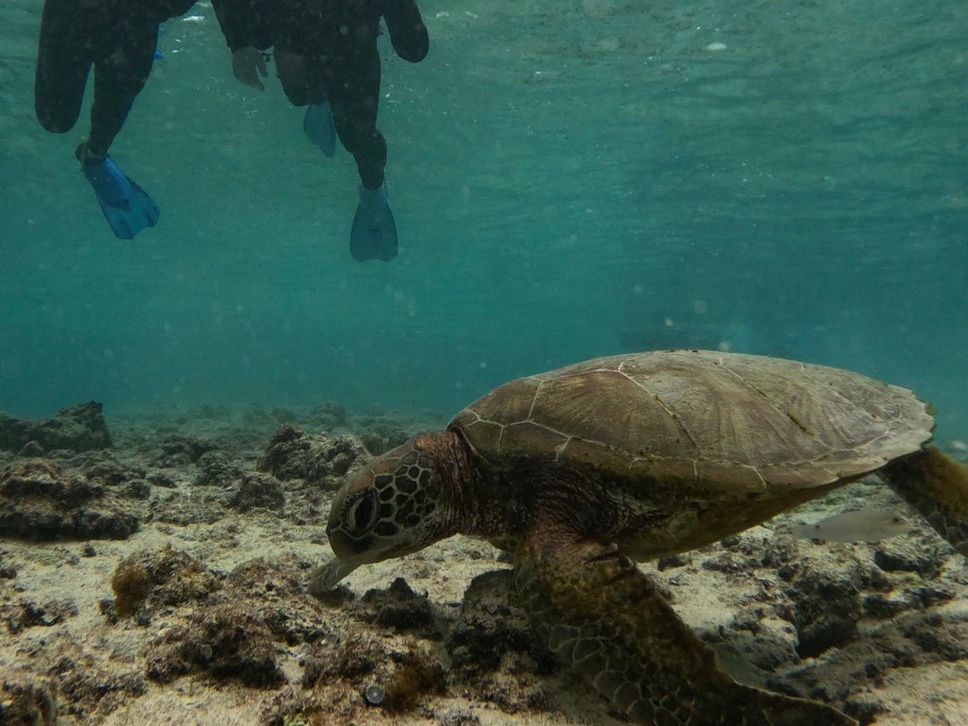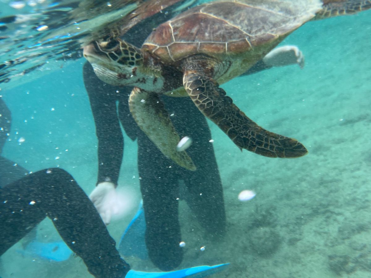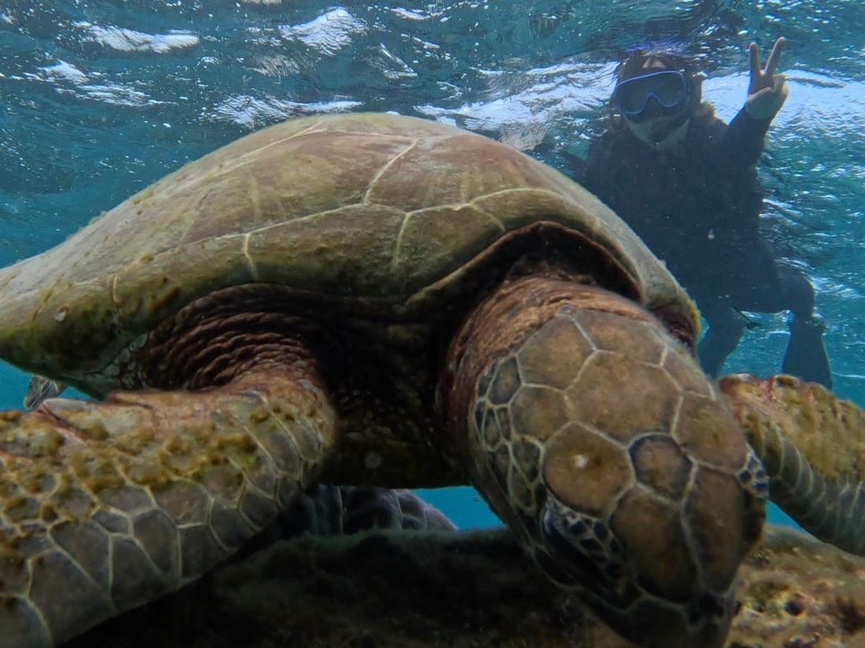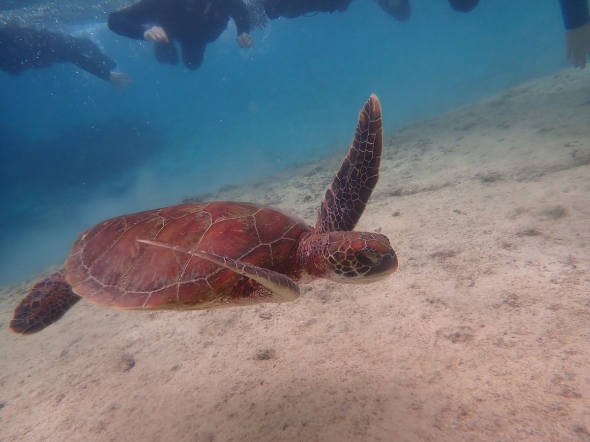 シュノーケリングでは、ご飯中のウミガメに会うことができました。おいしそうにご飯を食べているウミガメはとってもかわいくて癒されました!