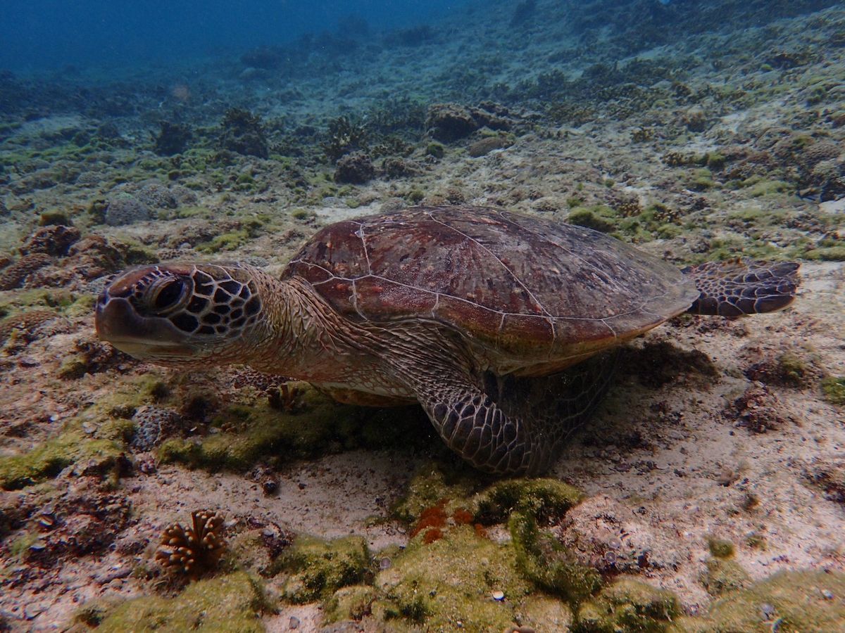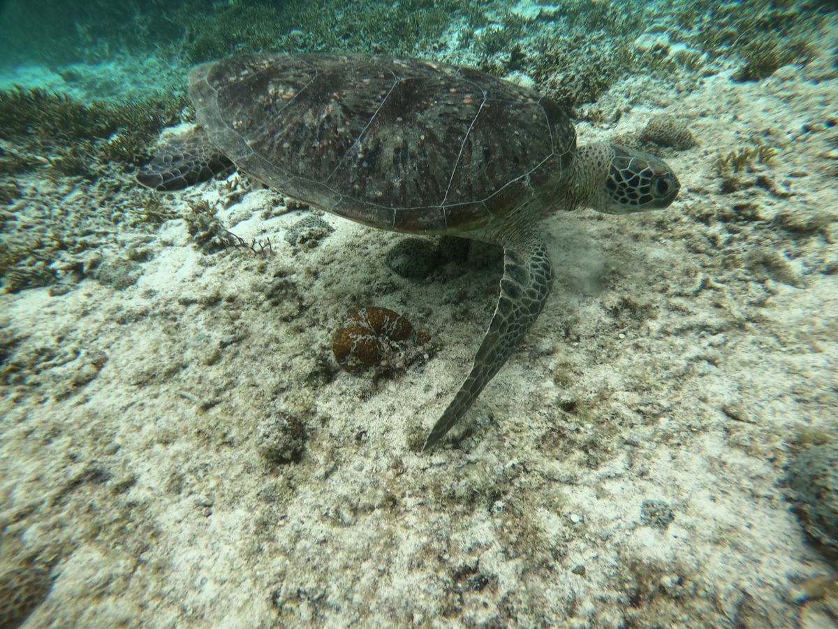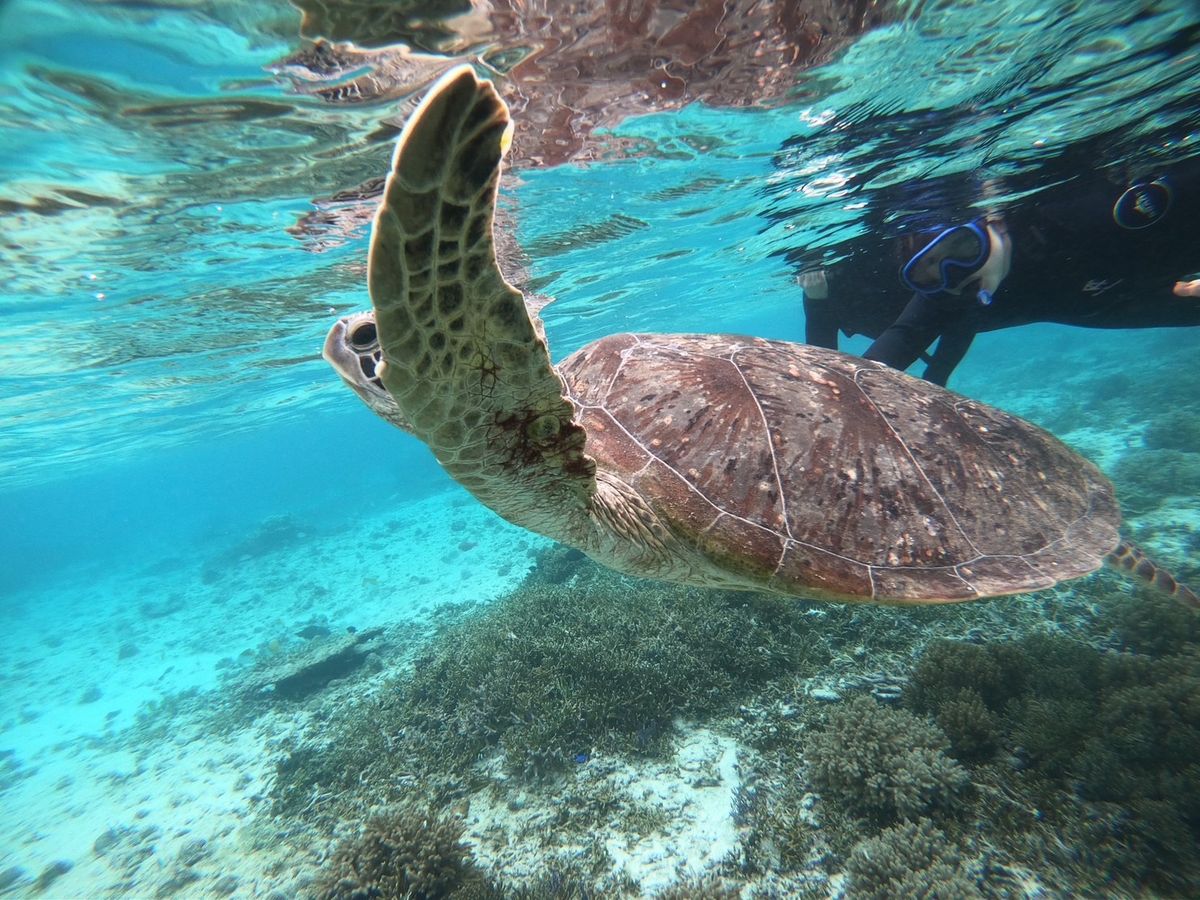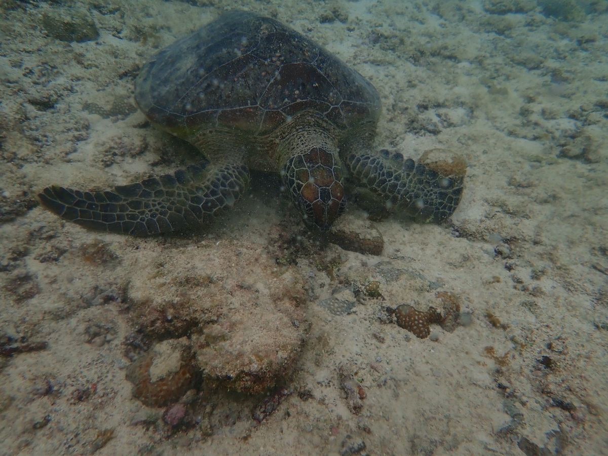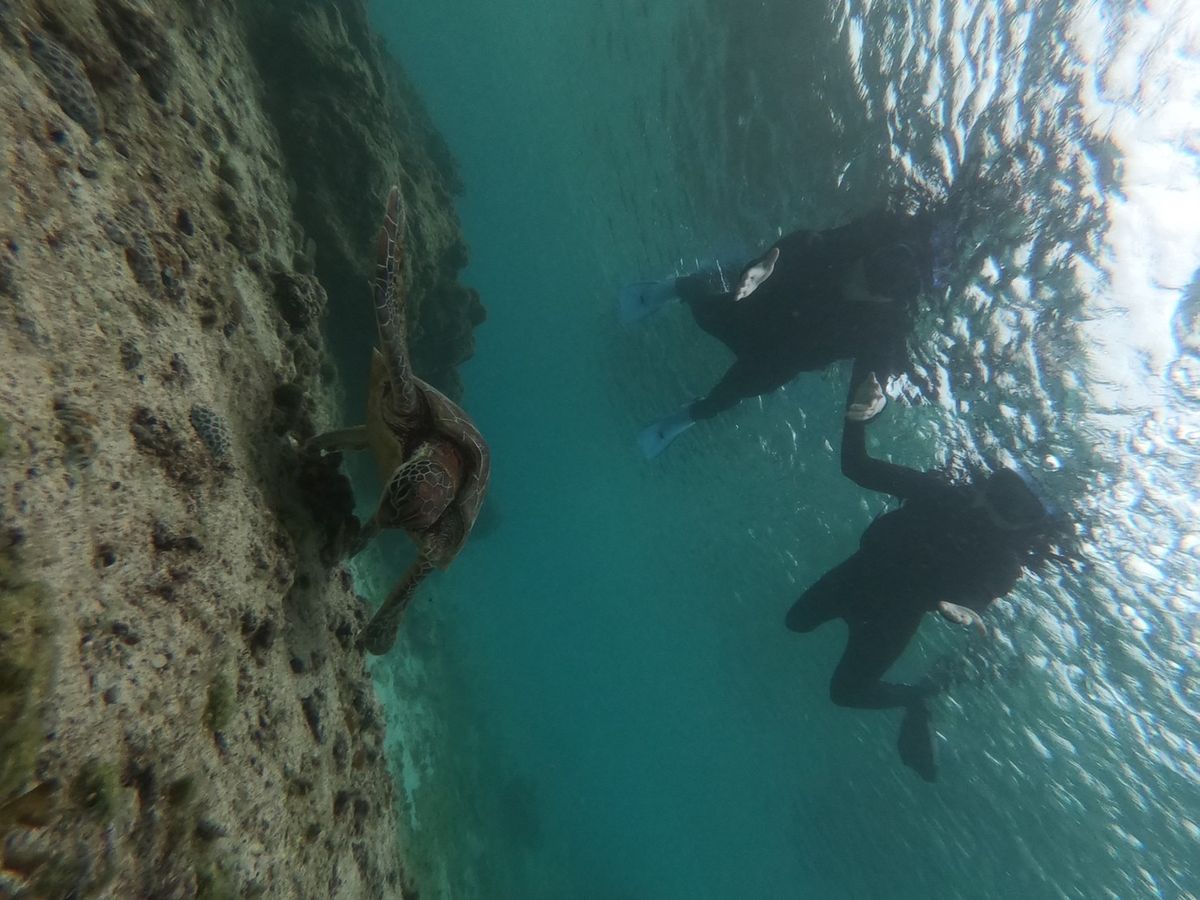 シュノーケリングでは、ご飯中のウミガメに会うことができました。おいしそうにご飯を食べているウミガメはとってもかわいくて癒されました!