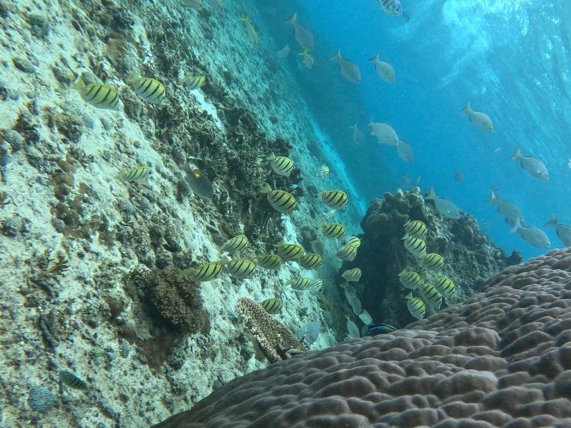 海の中は綺麗に澄んでいて、さまざまな種類の魚を鑑賞しました。