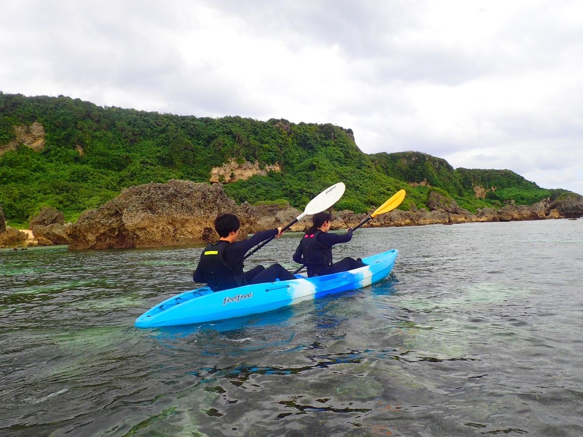 カヤックで洞窟の入り口まで行くため、最初は戸惑いましたが、ガイドのテツさんが盛り上げてくれたこともあり、楽しく進めます。
