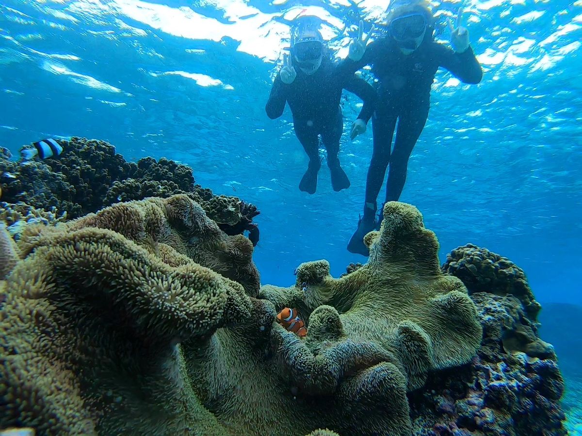 シュノーケリングでは優生さんがウミガメを探してくれたおかげで、ウミガメを間近で見ることができました!カクレクマノミも見れて、海の生き物達はとっても可愛かった(*´艸`)