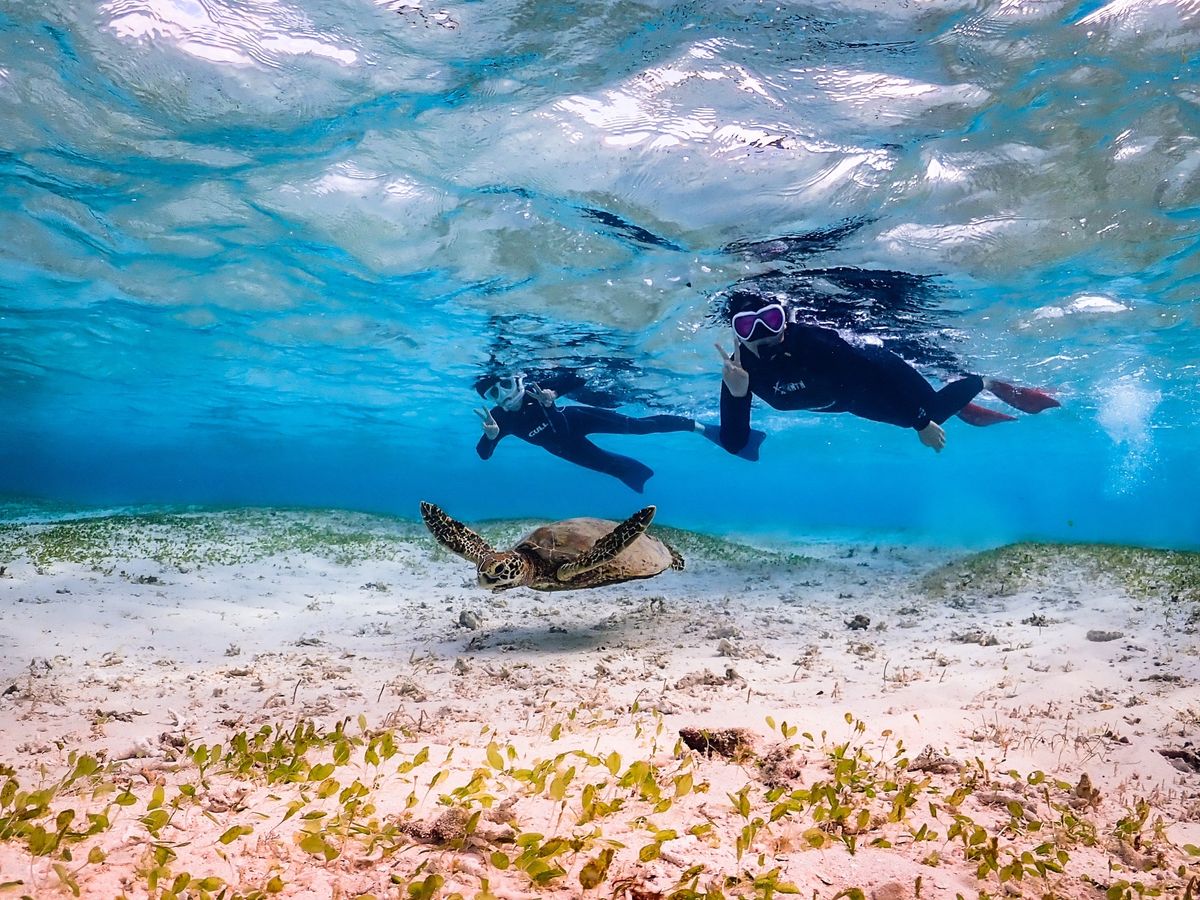 シュノーケルではウミガメにも出会えました!出会えなくても満足できるくらい海が綺麗で透き通ってて魚もいっぱいです!
