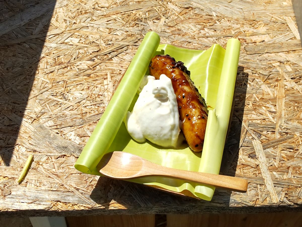 真夏の8月だったので、ものすごく暑かったですが、自分たちで作った焼き島バナナとジェラートが最高においしかったです。