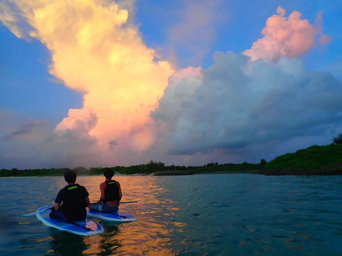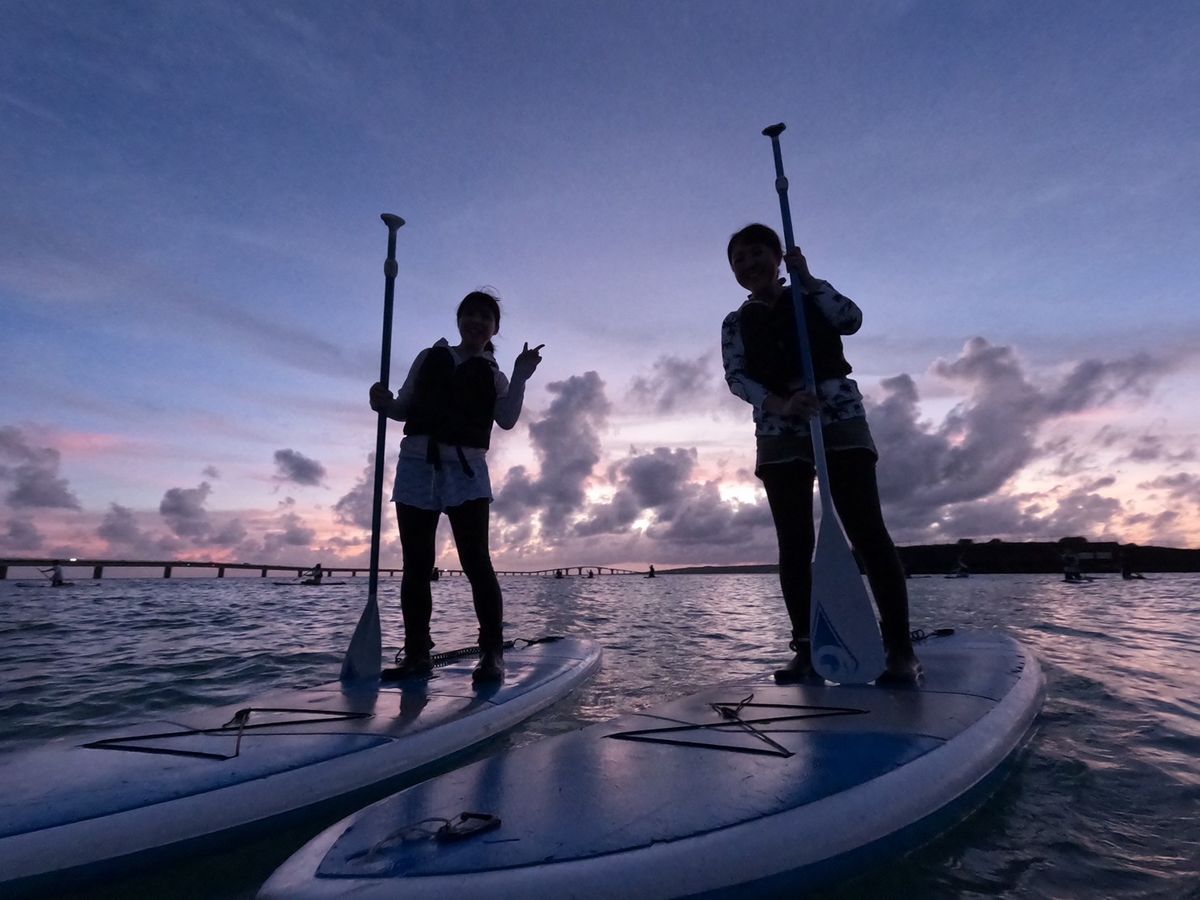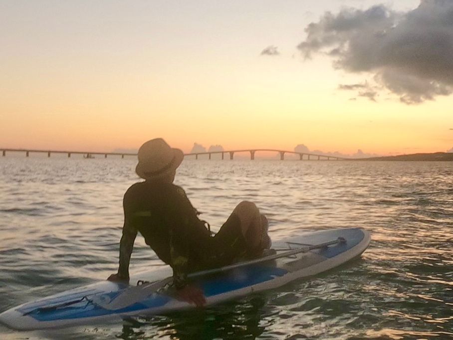 スタッフのお兄さんのガイドがとても丁寧で、最高のサンセットを拝むことができました♪ 初めてのサップで不安でしたが、随時声をかけてくださったので次第に慣れていきました。夕陽が沈んだ後の雲や空も神秘的で、心地よい時間を過ごすことができました。橋や星のトリビアも教えてくださり、宮古島の新たな一面も感じることができました。日中のサップよりも神秘的ならロケーションと過ごしやすい夕方の日差しで、リラックスした時間を過ごすことができました。この度は本当にありがとうございました!