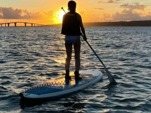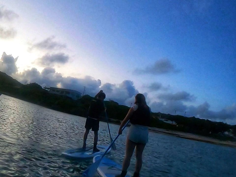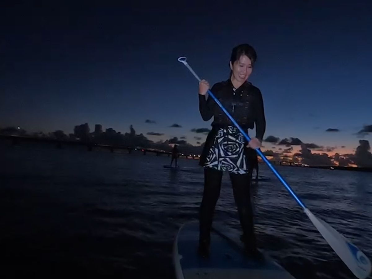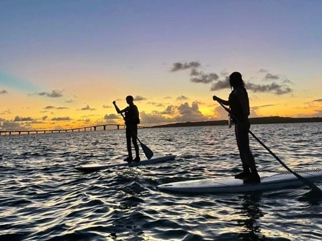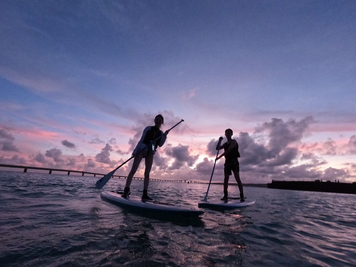 サップは初めての体験で、やる前まではうまくできるか正直不安を感じていました。ですが、装備の着用やボードやオールの操作方法等に至るまで丁寧かつわかりやすく説明をしていだきました。実際に海に出ると思ったよりも簡単な印象を受けました。時にはでうまく進まないこともありましたが、担当のインストラクターさんがとても優しく、ボードをロープで繋いで引っ張ってくれて、楽しみながらSUP体験が出来ました。また、SUPが楽しかったことはもちろん、なりよりも夕日がとても綺麗で景色を楽しみながらできたことも、最高にいい思い出になりました。写真は自前でカメラやスマホを持参しなくても、インストラクターが写真をとってくれるので、SUPや景色を楽しむのに専念出来ました。あの宮古島の夕日が沈む沈むときの空がピンクやオレンジ染まった幻想的な景色は最高の思い出となりました。本当にありがとうございました。