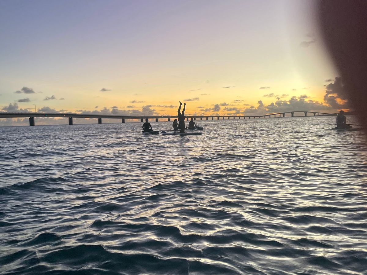 宮古島で2回目のSUP、サンセットの時間は初めての参加でした。今回会場となったサンセットビーチで夕日は見たことがありましたが、海に出てみる夕日はまた違って更に綺麗でした。