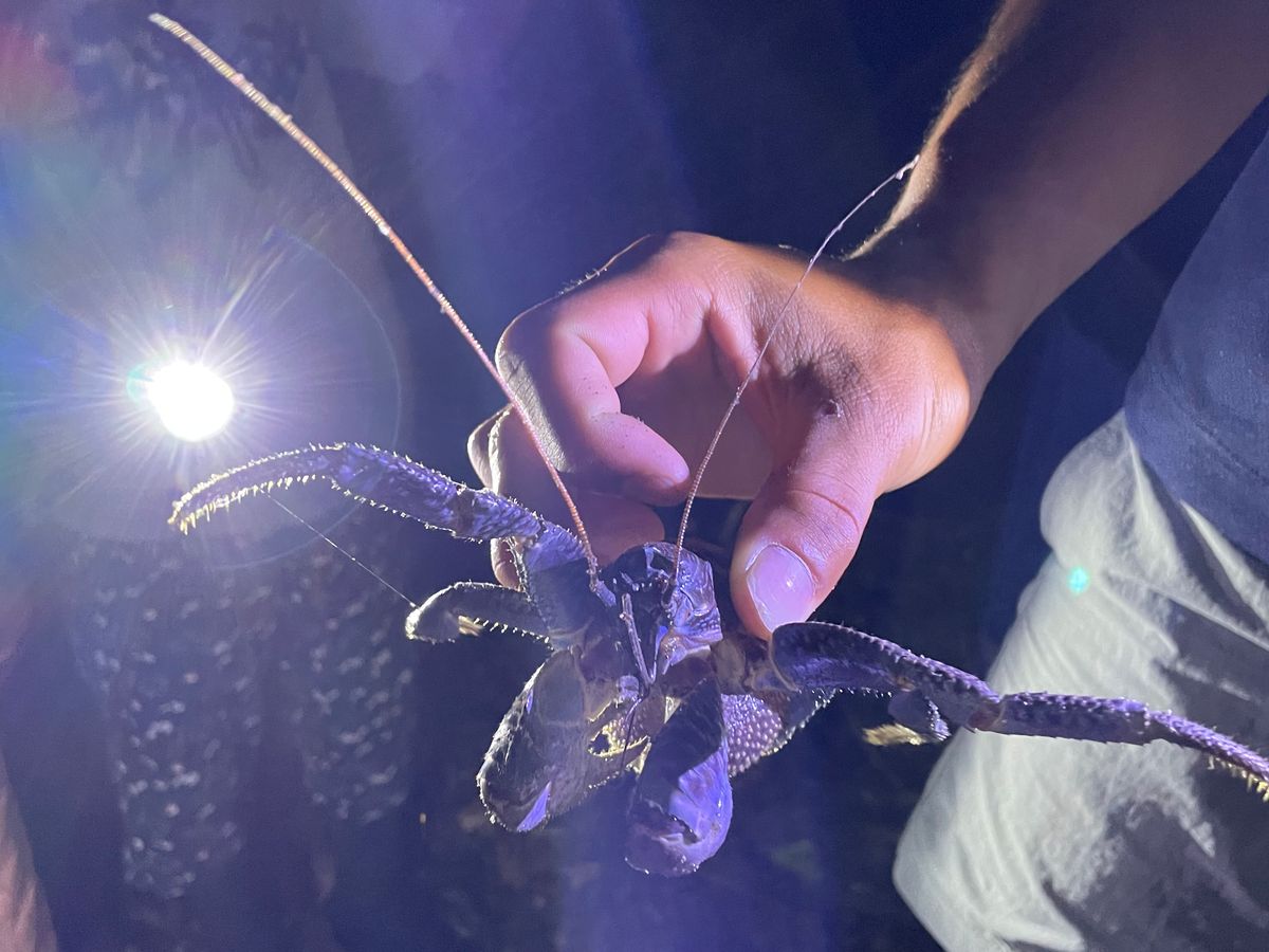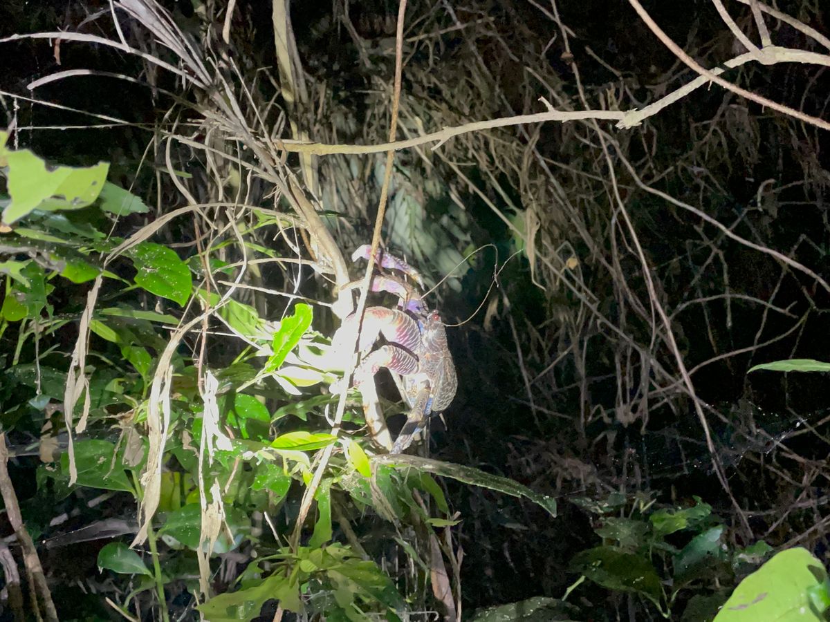 ヤシガニは3匹見つかりました。真っ青で丸っこくて迫力がありました。それ以外にキノボリトカゲやヤモリ、コロギスという珍しい昆虫も。ツアー客みんなで探すのも楽しかったです。