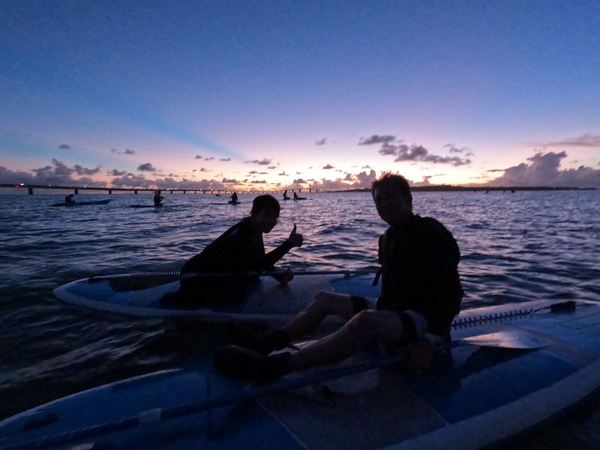 天候の影響で沈みゆく太陽は見れませんでしたが、ガイドのたろうさんが盛り上げてくださり楽しいsup体験となりました。