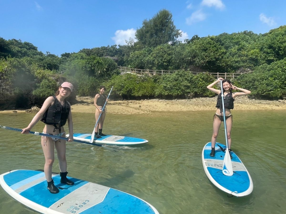 スタッフが皆フレンドリーでプレッシャーのない楽しい雰囲気でできました。うまくできず水の中に落ちても、みんなで笑ってとても楽しかったです。魚もたくさんいてとっても気持ちよかったです。丸い岩の間をサップで通り抜けるとき少し難しくて、変なところに行ってしまったけれど、スタッフがすぐに助けに来てくれました。宮古島の素晴らしい自然の中でサップができるなんて、夢のようでした。スタッフが最初にたくさん説明してくれて、とてもわかりやすかったです。また、スタッフがとっても面白い方々で、また来たいなと思いました。