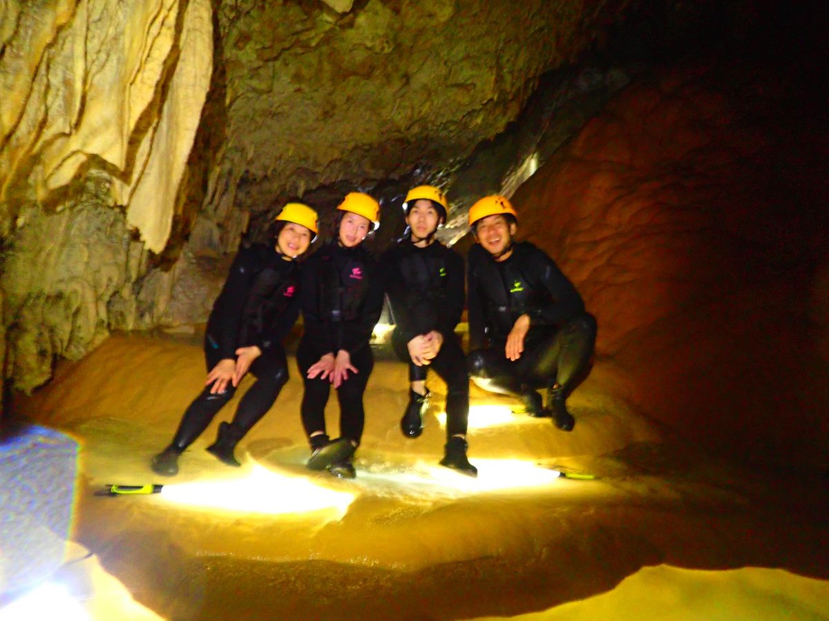 天気はあまり良くなかったけど、鍾乳洞探検なので特に気になりませんでした。(洞窟の入口まで30分ぐらい歩くので逆に良かったかも)スタッフさんも気さくな方でお話しやすく、撮影NGな場所やその理由、鍾乳石の説明なども楽しく聞いてました。洞窟内は湧水で海水より冷たいそうで、ウエットスーツを用意して頂いてましたが、「うわ〜冷たい!」程度で着なくても問題なかったです。(ラッシュガード&トレンカ着用)ツアー写真もいっぱい撮ってもらい、一緒に参加した友達も喜んでました。