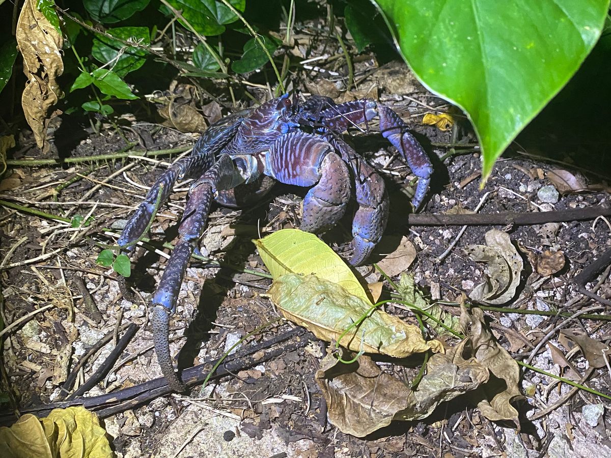 午前中雨だったようで、宮古島特有のたくさんの大きなヤシガニに出会えました。食べるとめっちゃおいしいとのことを教えてもらいました。イセエビよりもおいしいとのこと!見た目はバルタン星人ぽく、ややグロテスクでしたw。オカガニ?もたくさんいました。あと、ととろの傘とか。小さな蛍も見れました!公園の中を基本散策なんですが、真っ暗なのと、結構草が生い茂っているので、ジャングルっぽい!雨が降っても、多少なら、天然の草木が守ってくれます。