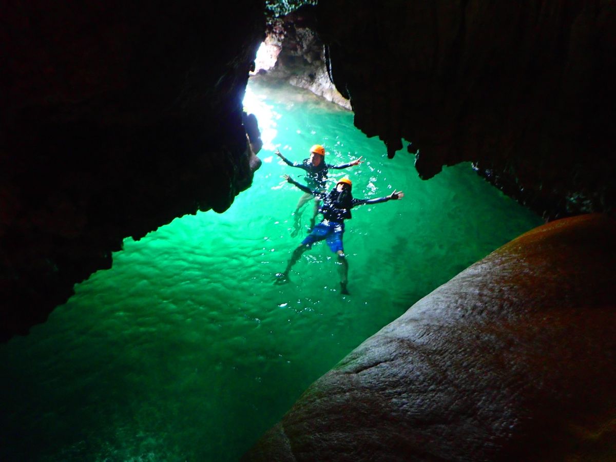 鍾乳洞内を登ったり泳いだりするので、ケガをしないようラッシュガードやスパッツを着ていくと良いと思います。