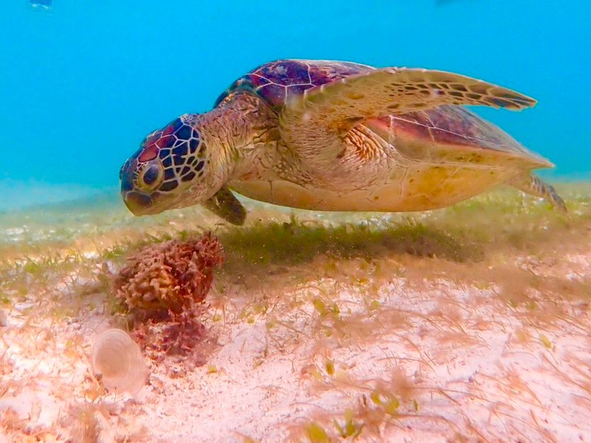 海に入ってすぐにウミガメさん二匹に遭遇!初めてこんな間際で見ることができて感動しました。最終5匹ぐらいいたと思います。