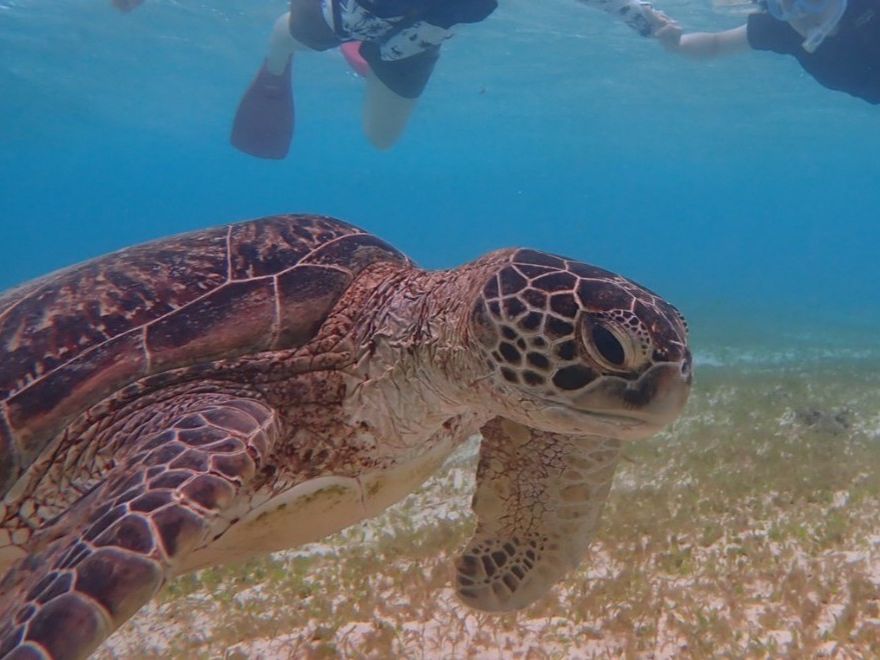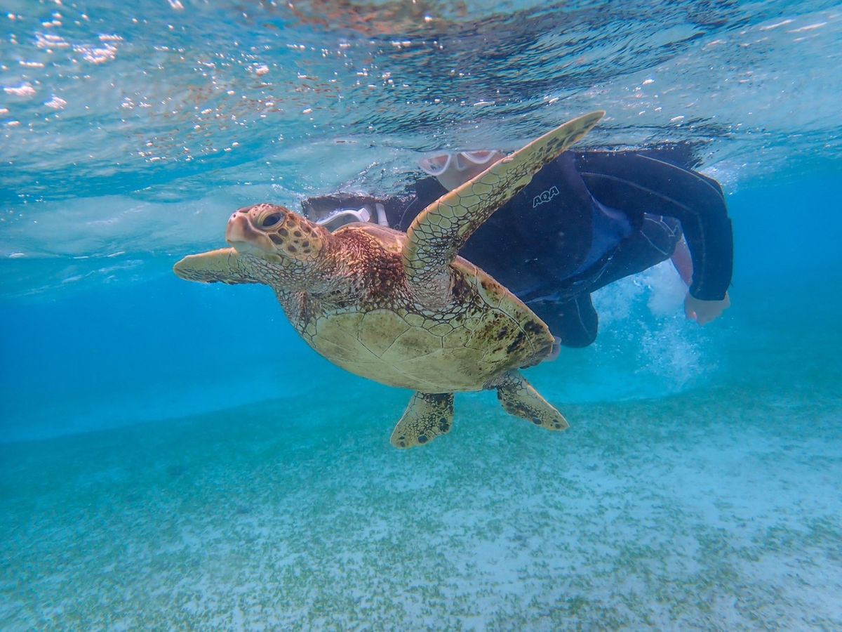 シュノーケリングでは、慎重で怖がりな小学生と参加しましたが、ガイドのお兄さんがサメを怖がるのを安心させてくださいました。魚も沢山いて、ウミガメにも出会えました。